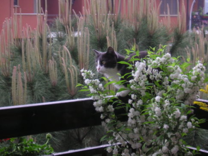 Very nice flowers... and cat!